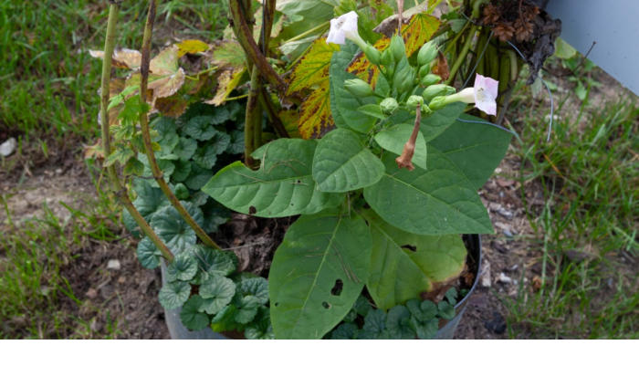 ebenso wie von mir jeweils eine Tabakplanze beigepflanz wird, die den Befall mit